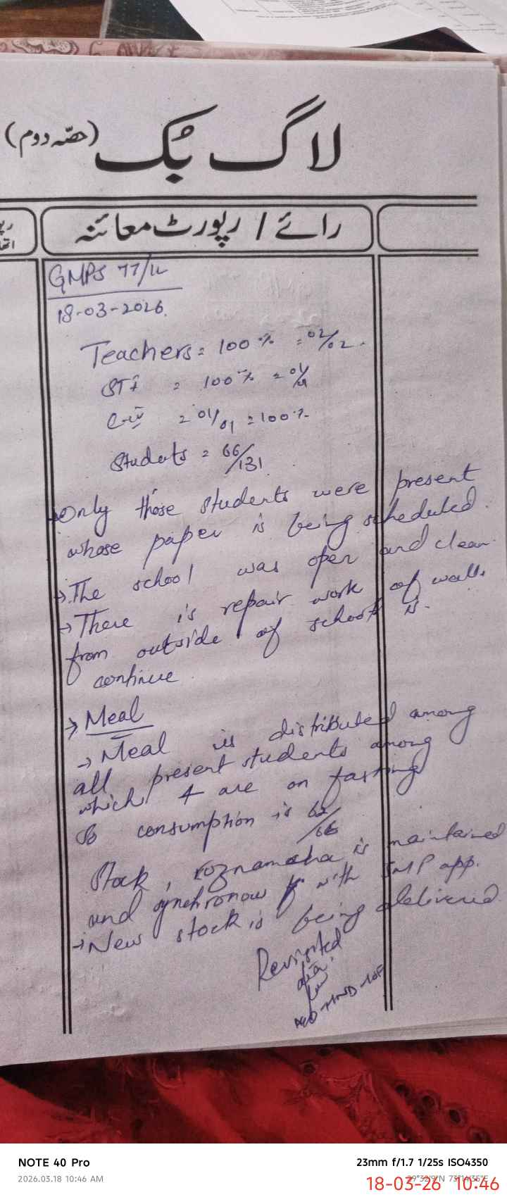 | Certified that this School was Inspected by the Undersigned MEA/DMO Today and the Information Stated Above is as Per Record. | |||||