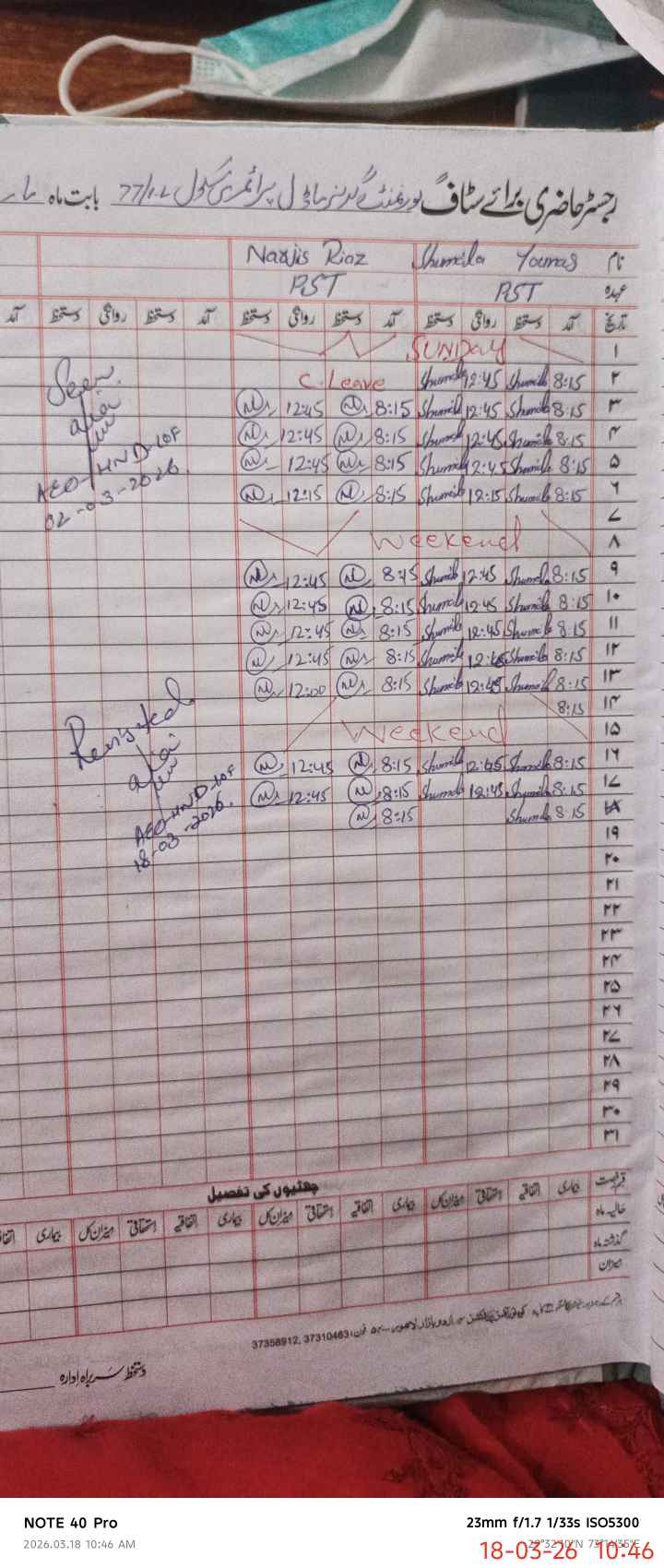 | Name of AEO: | AEO Contact No.: | MEA Phone#: 03**** | ||