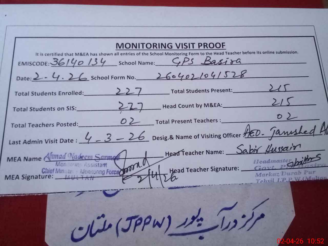 | EMIS Code: 36140134 | Name of School: GPS BASIRA | |||