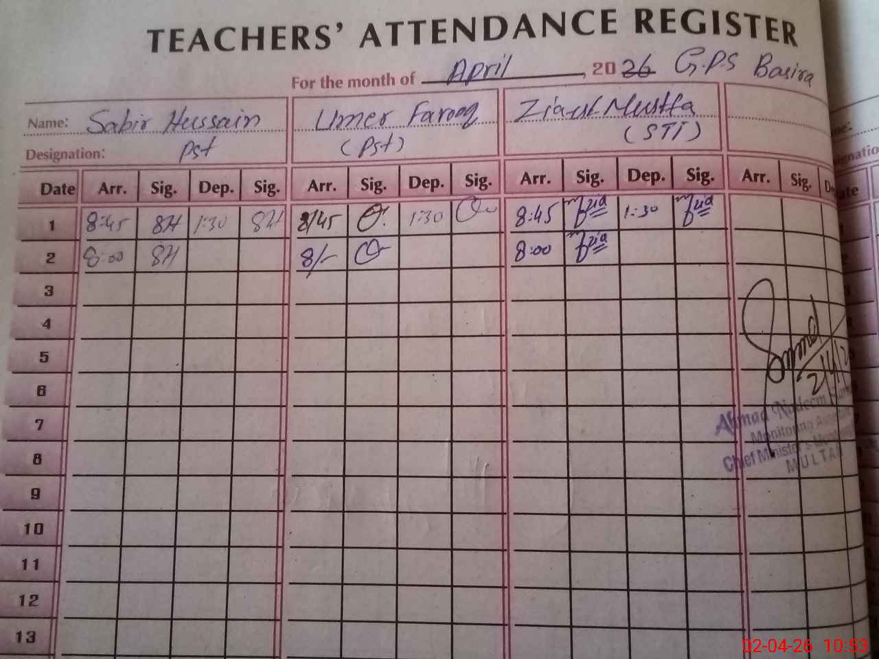 | Name: SA**** HU**** Designation: (School Headmaster's/Headmistress's) PST Phone/Cell Number: 03**** |