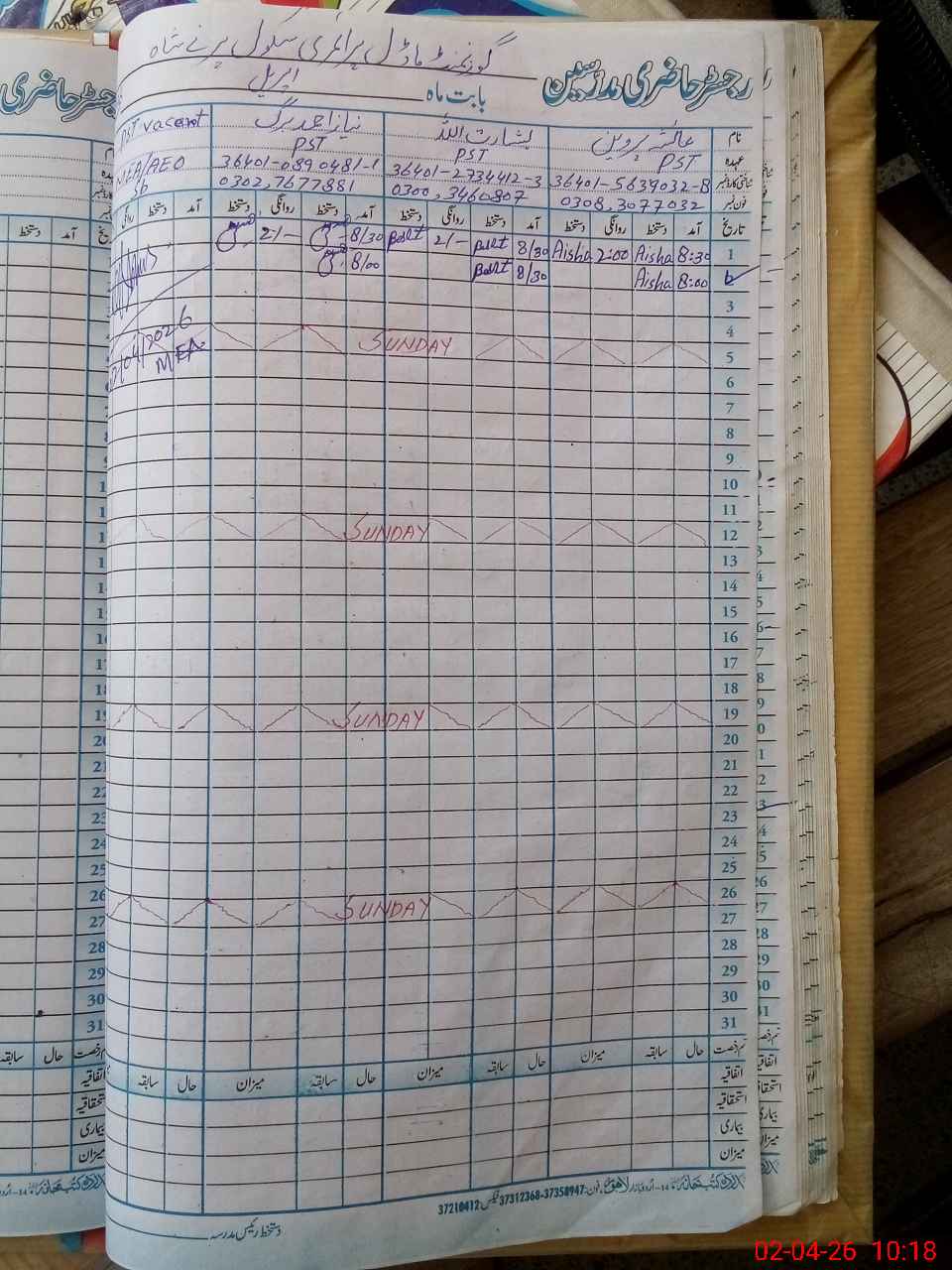 | Name: AI**** PE**** Designation: (School Headmaster's/Headmistress's) PST Phone/Cell Number: 03**** |