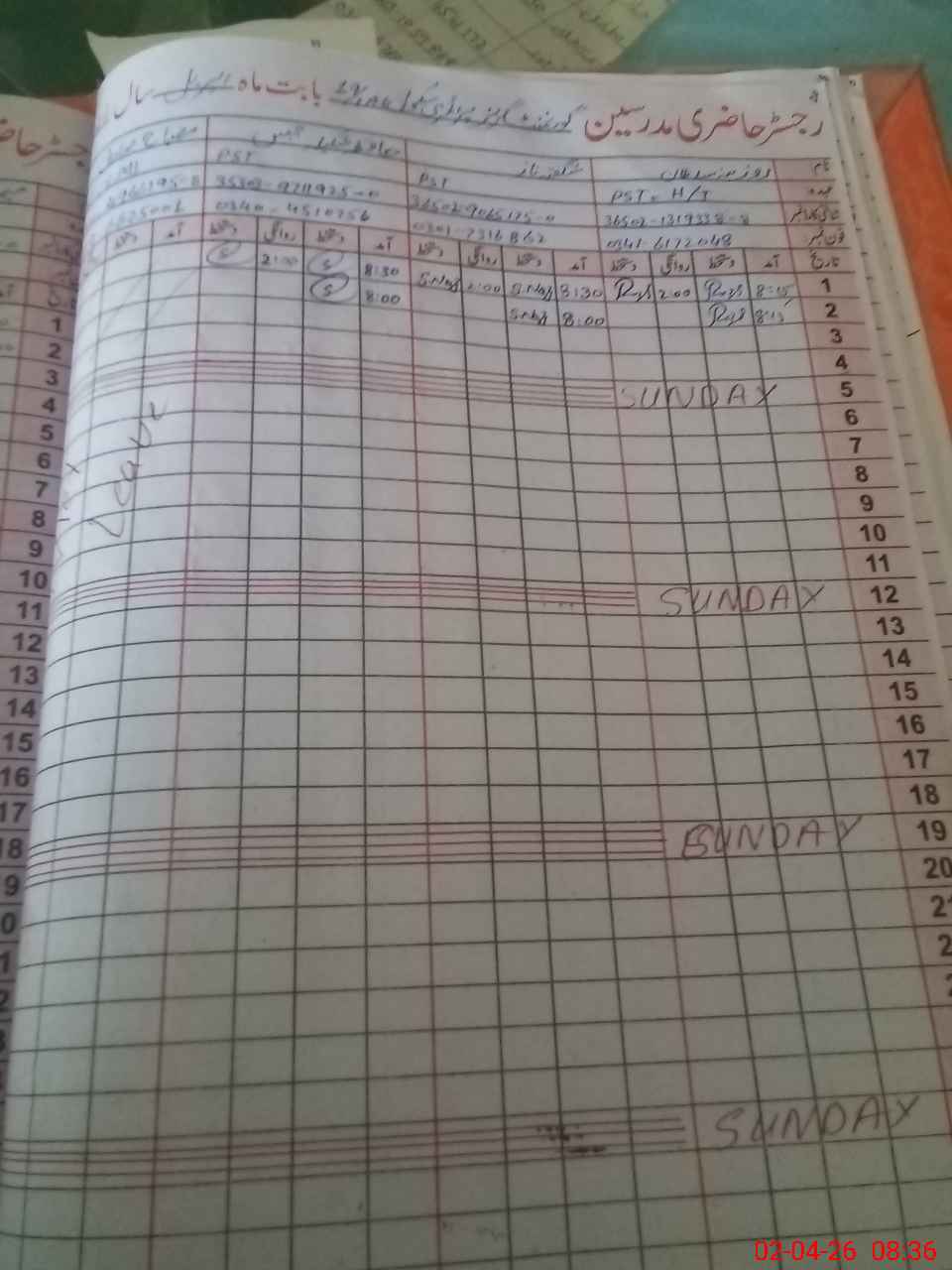 | Name: RO**** Designation: (School Headmaster's/Headmistress's) PST Phone/Cell Number: 03**** |