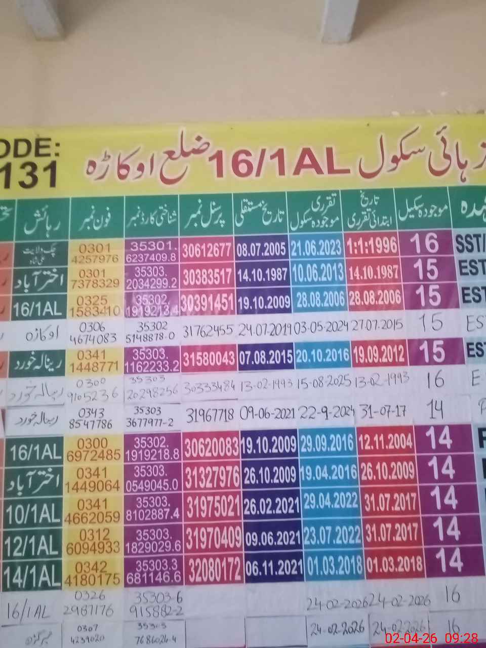 | District: OKARA | Tehsil: RENALA KHURD | Markaz: SECONDARY-WING | Level: High | |