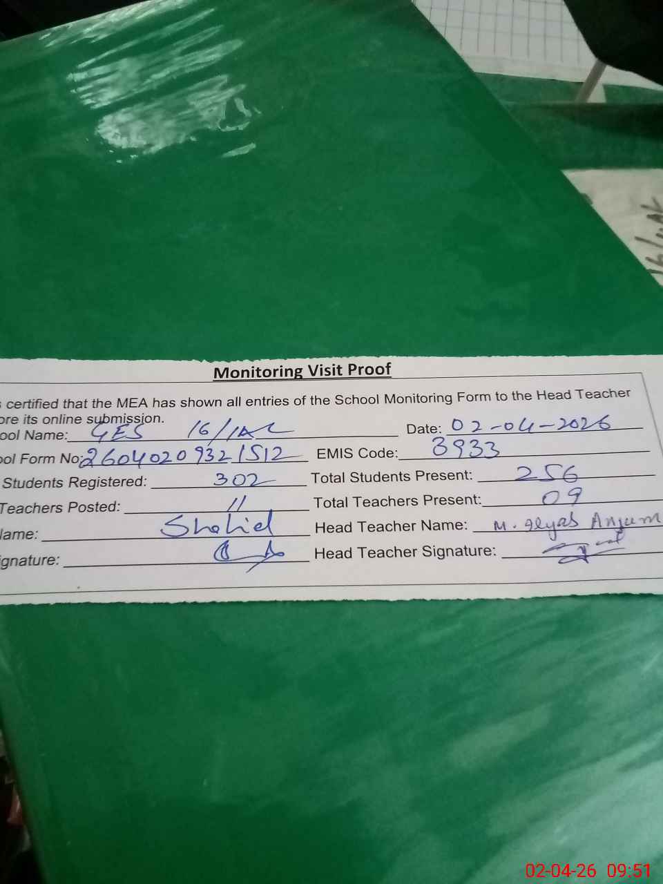| EMIS Code: 39330085 | Name of School: GES CHAK NO. 16/1-AL | |||