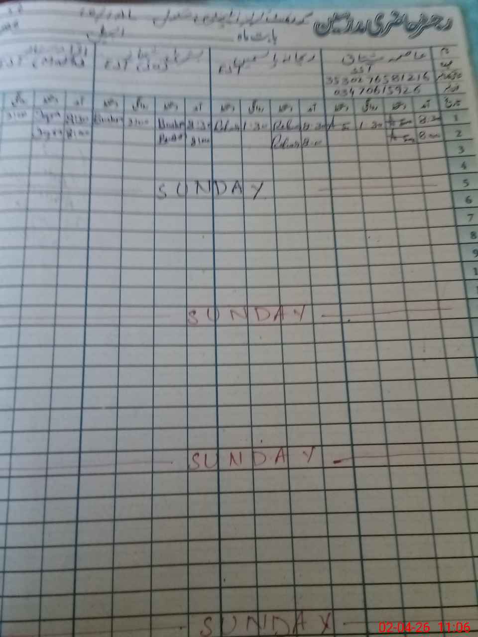 | CNIC | Full Name | Designation | R/C | Absence During Last Calender Month |