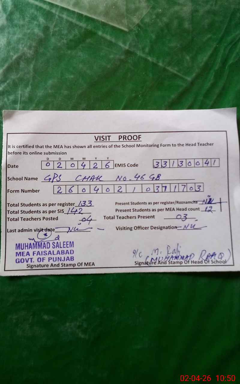 | EMIS Code: 33130041 | Name of School: GPS CHAK 46 GB SAMUNDRI | |||