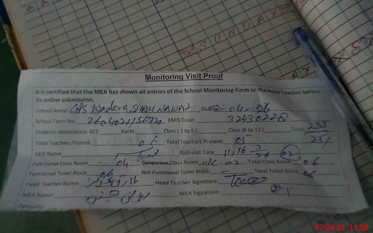 | EMIS Code: 32430228 | Name of School: GPS WADERA SHAH NAWAZ KHAN | |||
