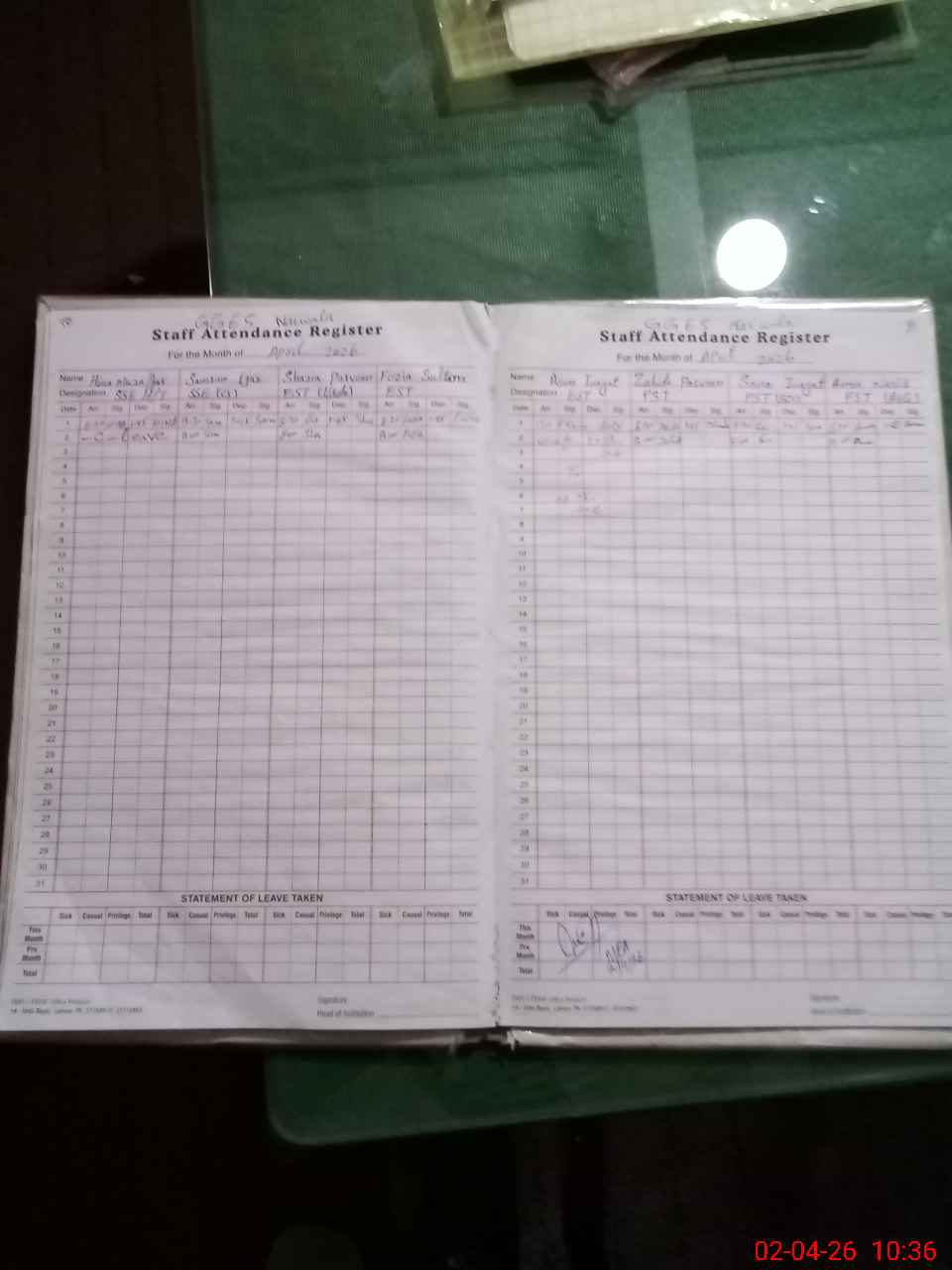 | Leave | Duty | Absent | Maternity | Medical | Ex- Pak |