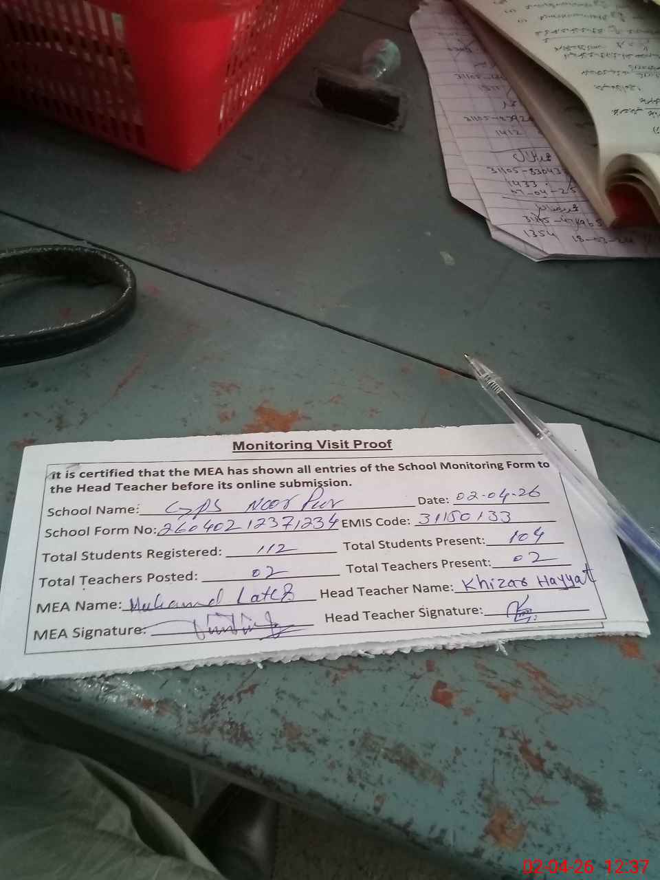 | EMIS Code: 31150133 | Name of School: GPS NOOR PUR | |||