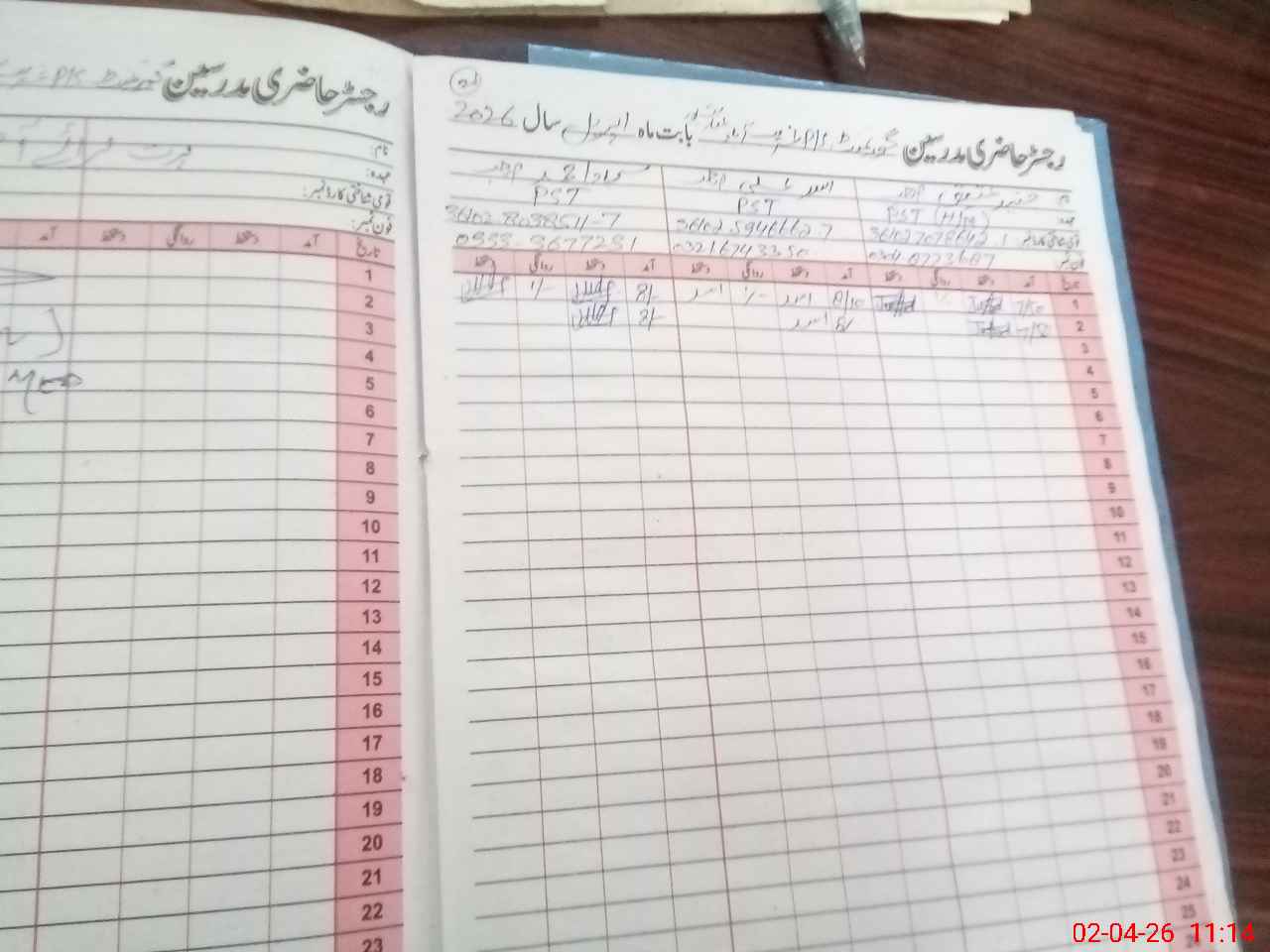| CNIC | Full Name | Designation | R/C | Absence During Last Calender Month |