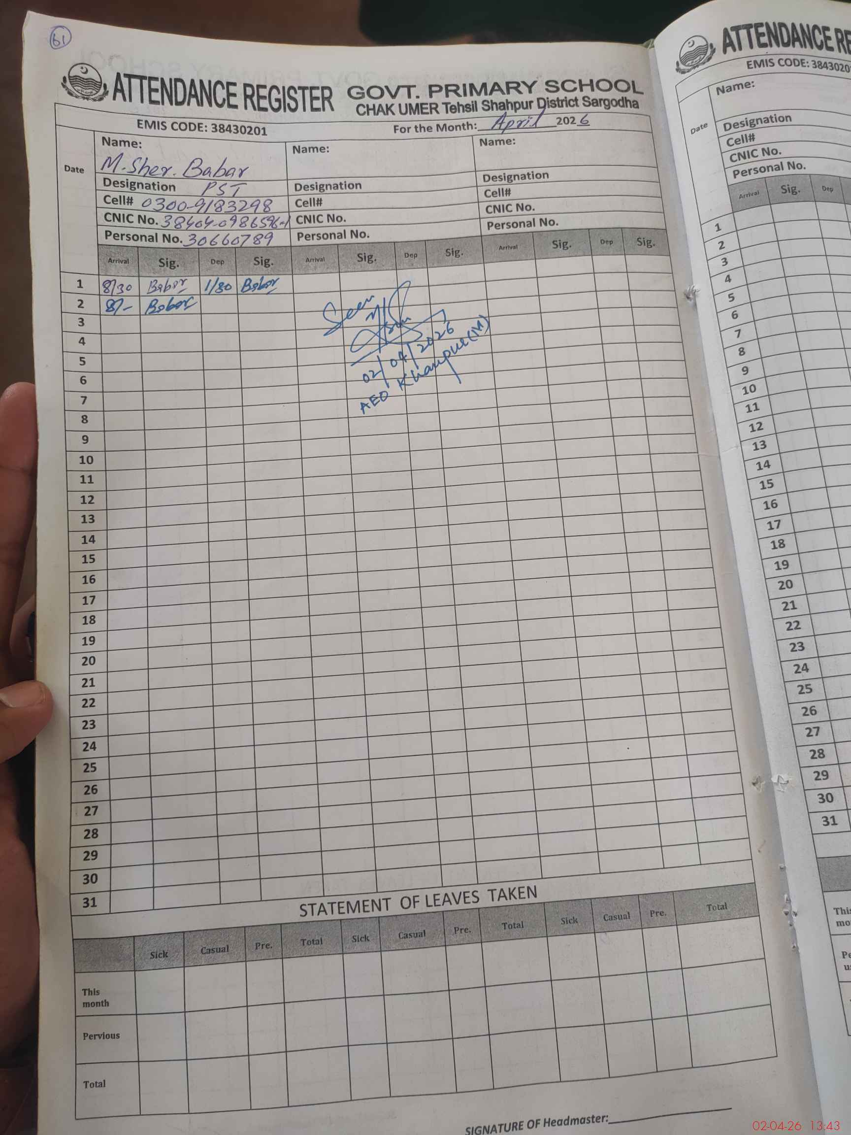 | Name: AH**** BI**** Designation: (School Headmaster's/Headmistress's) PST (Sc-Math) Phone/Cell Number: 03**** |