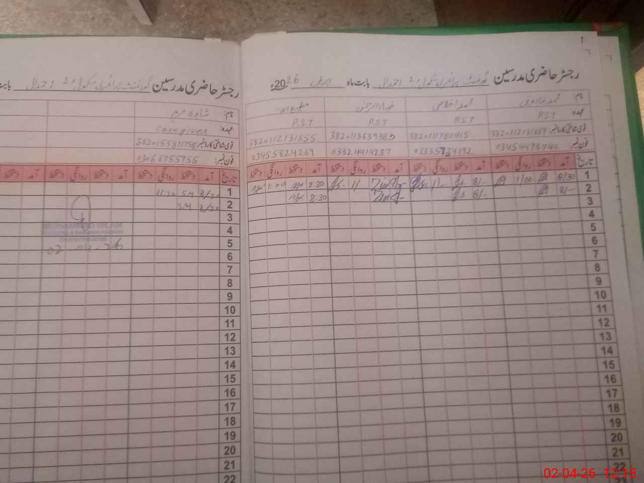 | Name: MU**** FA**** Designation: (School Headmaster's/Headmistress's) PST Phone/Cell Number: 03**** |