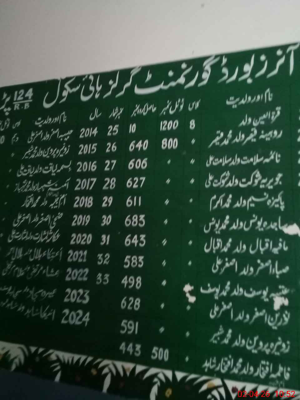 | EMIS Code: 33150192 | Name of School: GGHS CHAK NO 124 RB PIOPIOM | |||