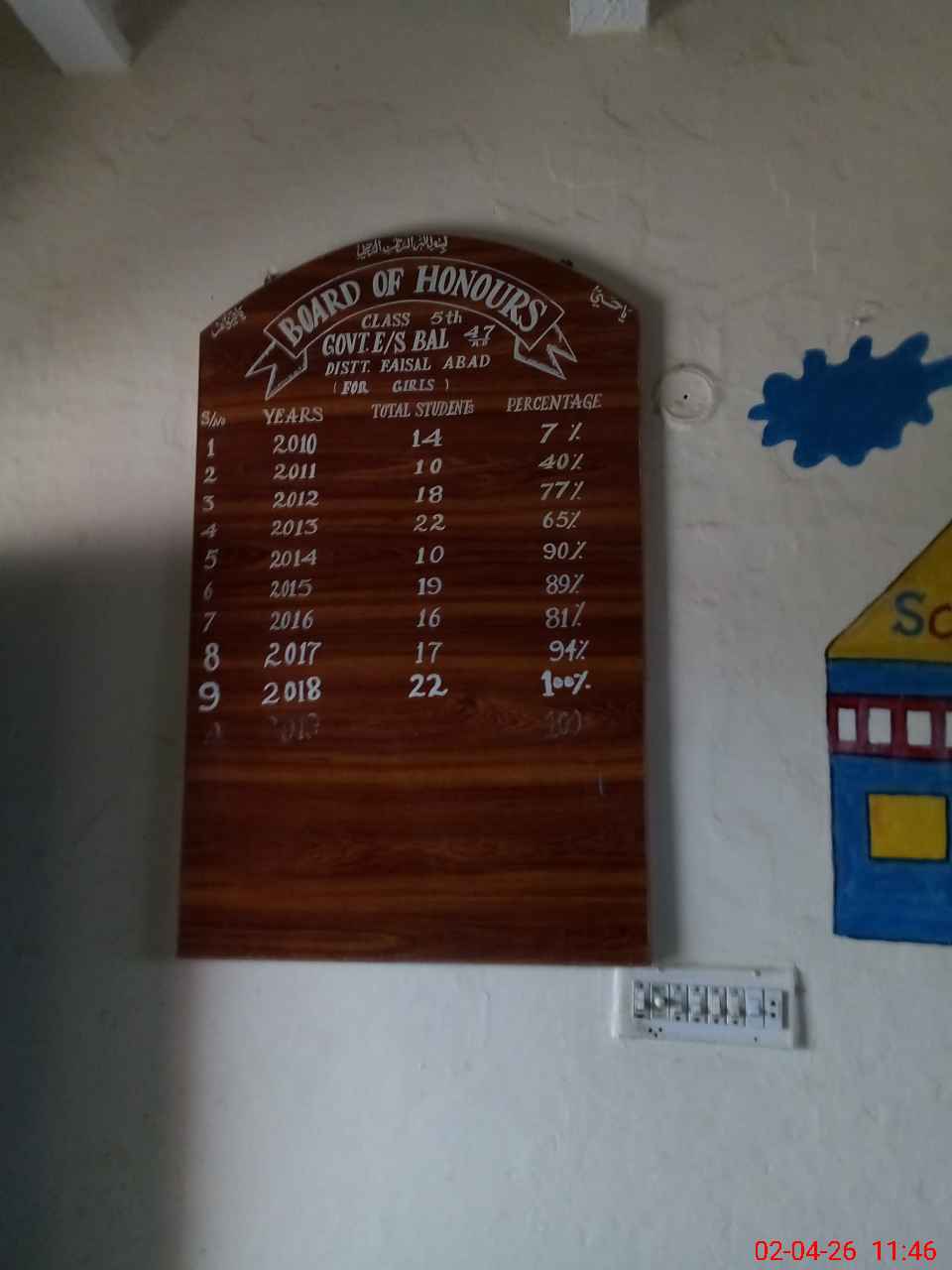 | EMIS Code: 33150181 | Name of School: GGHS CHAK NO 47 RB | |||