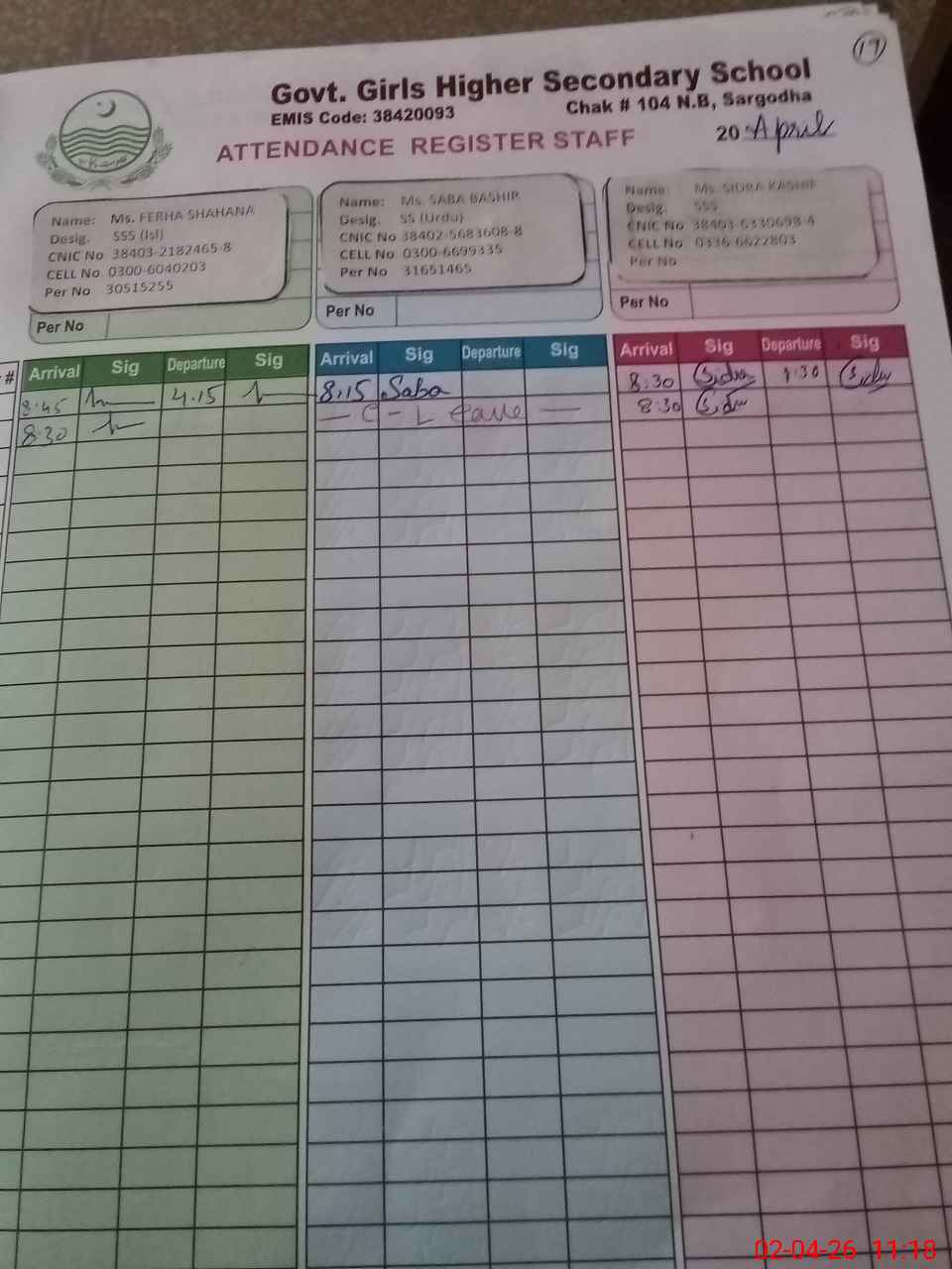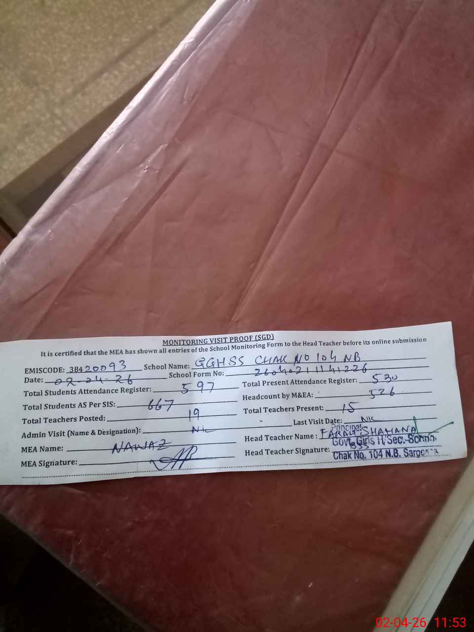 | EMIS Code: 38420093 | Name of School: GGHSS CHAK NO.104 NB | |||