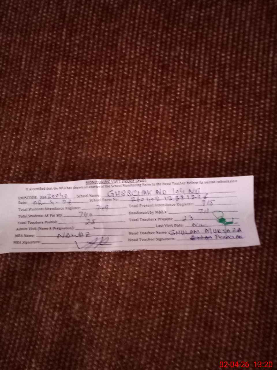 | EMIS Code: 38420040 | Name of School: GHSS CHAK NO.104 NB | |||