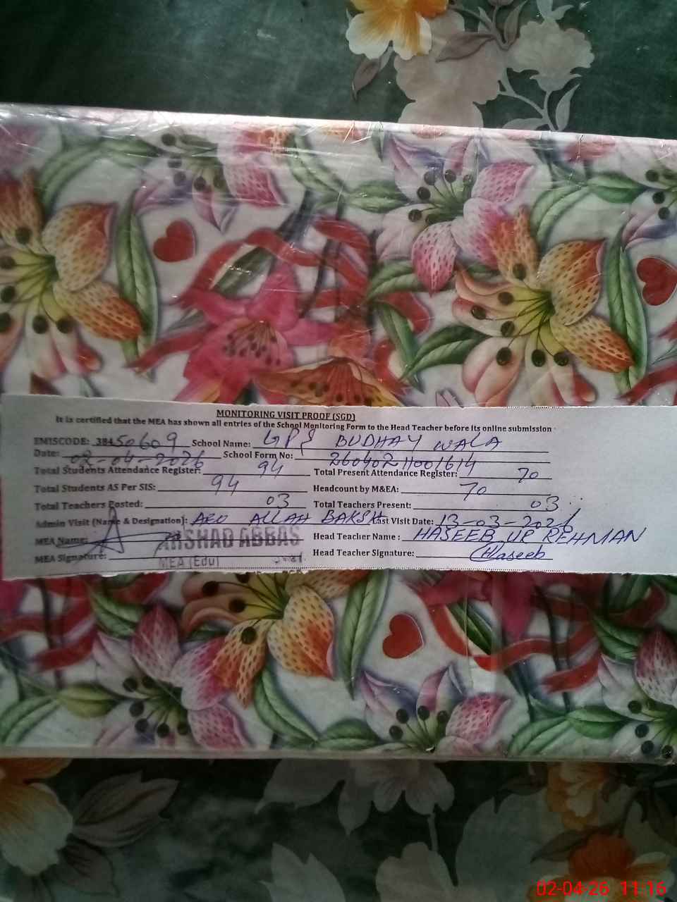 | EMIS Code: 38450609 | Name of School: GPS BUDHAY WALA | |||