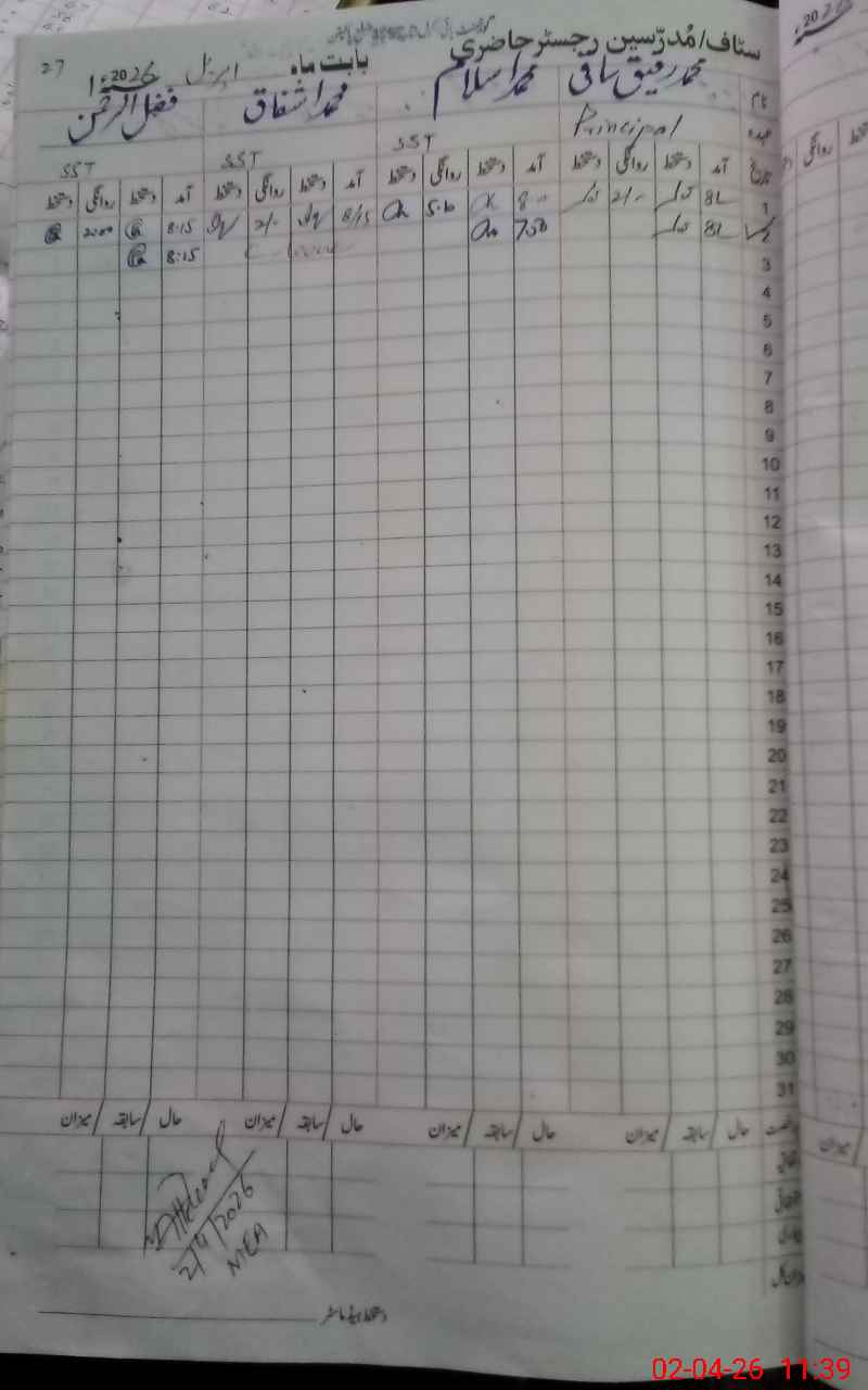 | Attendance Register | Head Teacher | MEA with School | Visit Proof |