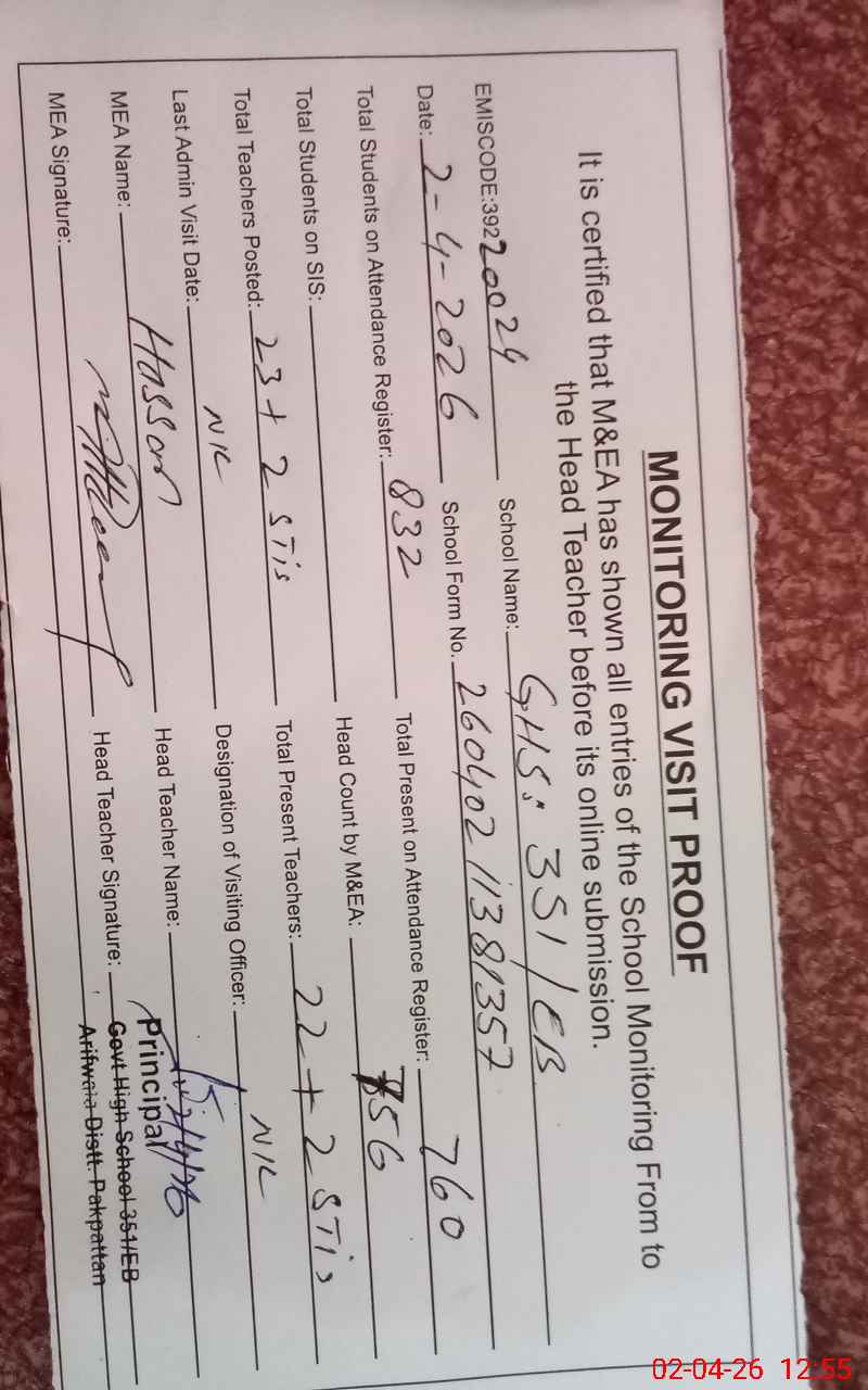 | EMIS Code: 39220024 | Name of School: GHS 351/EB ARIFWALA | |||