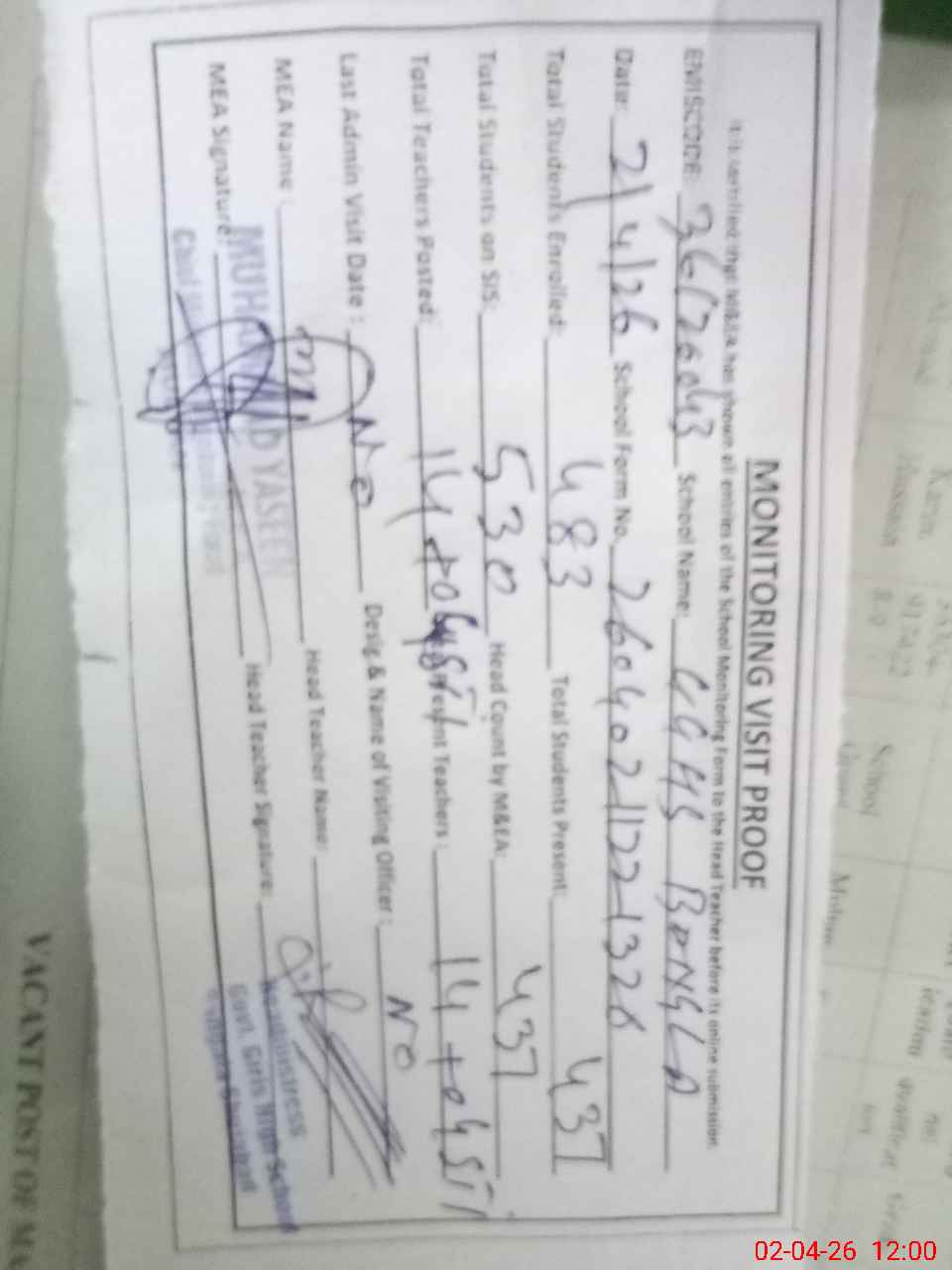 | Certified that this School was Inspected by the Undersigned MEA/DMO Today and the Information Stated Above is as Per Record. | |||||
