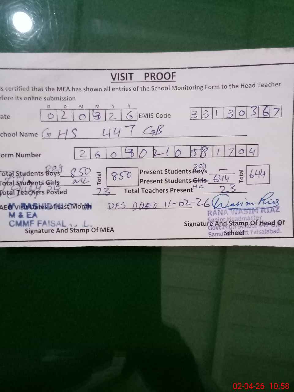 | EMIS Code: 33130367 | Name of School: GHS CHAK 447 GB SAMUNDRI FSD | |||
