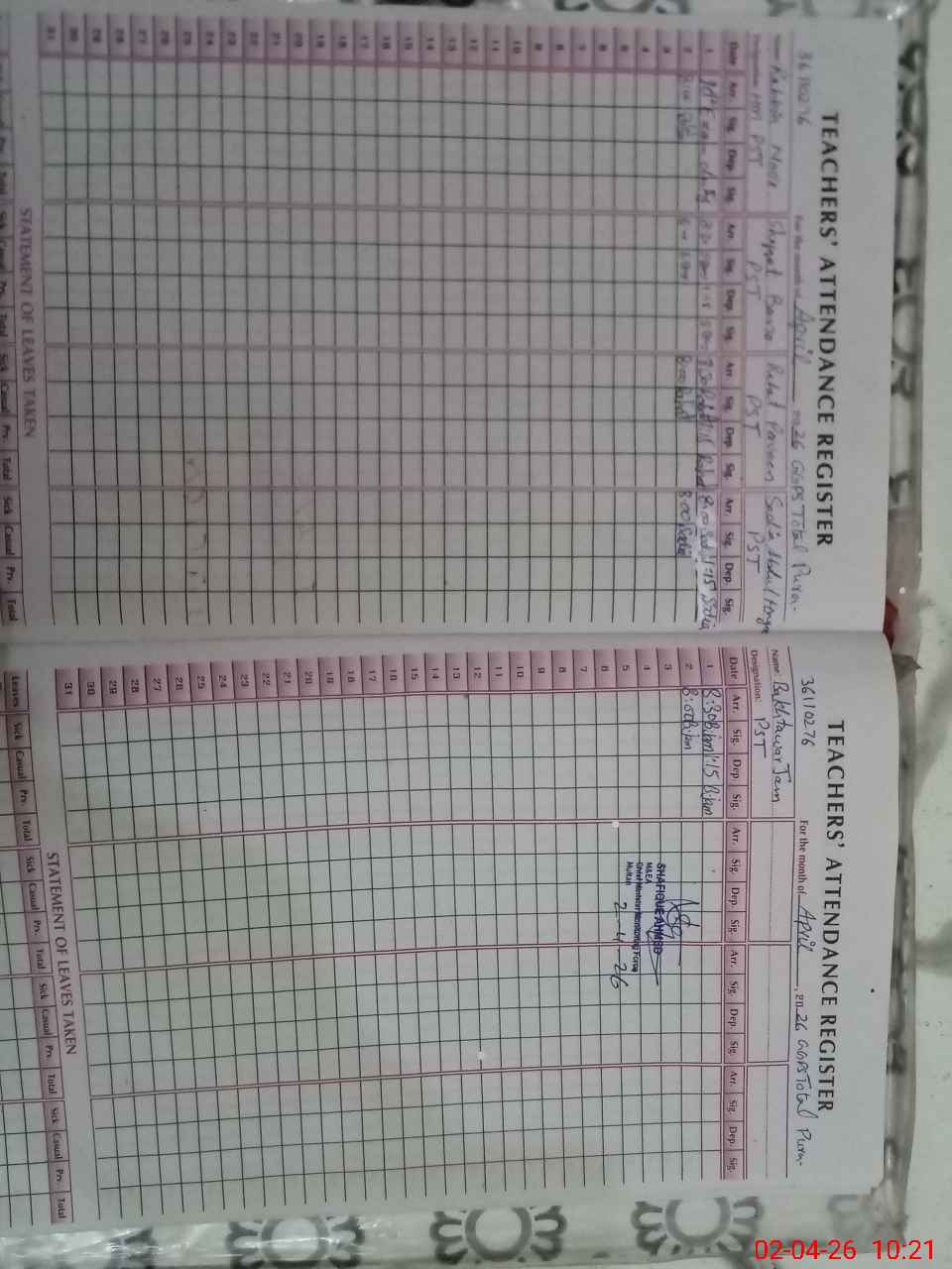 | Remarks (Use Separate Page if Required): class 5th has been passed out New books still not issued Due to First day of new session students presence is very low | |||||