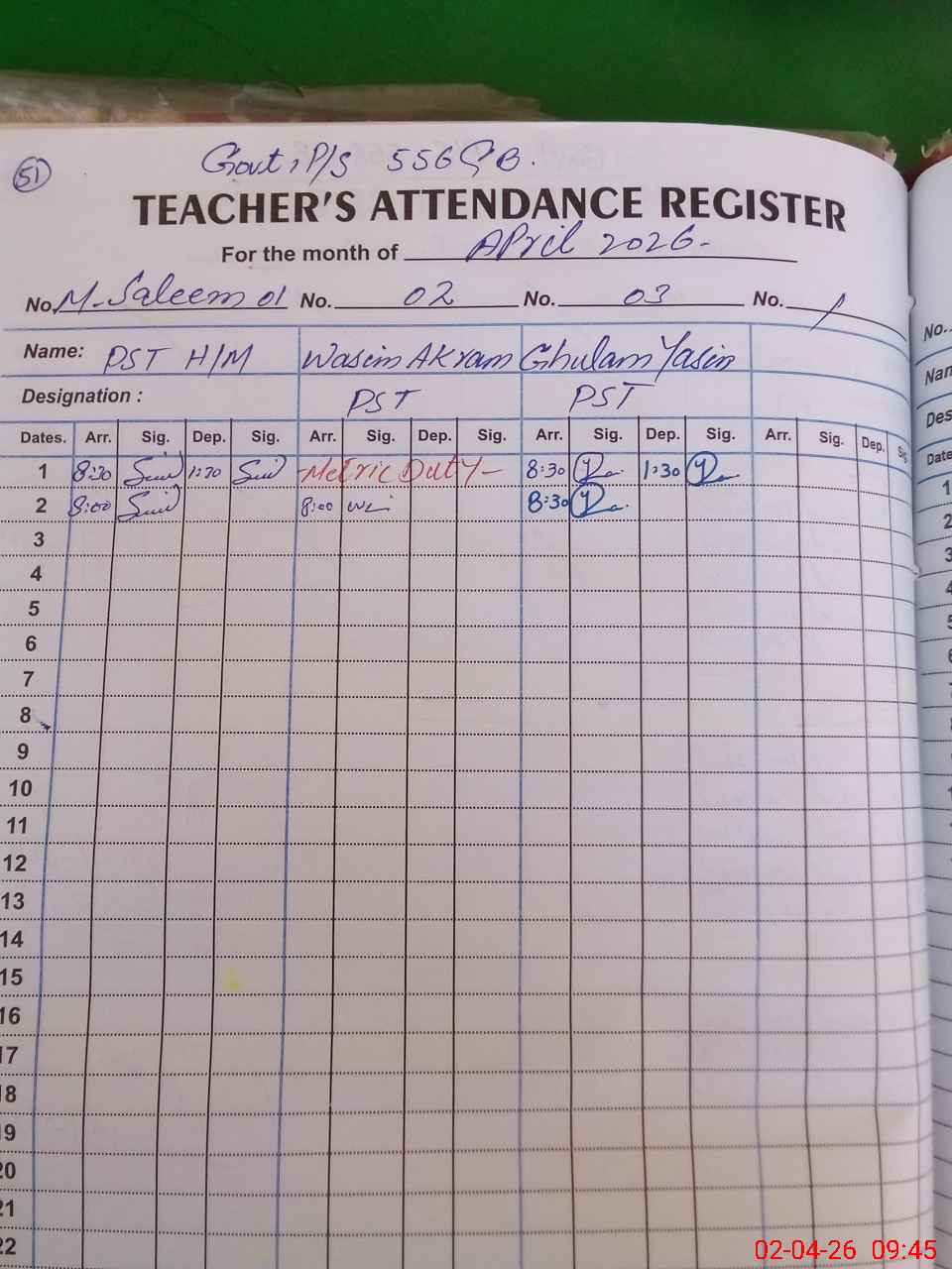 | Name: MU**** SA**** Designation: (School Headmaster's/Headmistress's) PST Phone/Cell Number: 03**** |