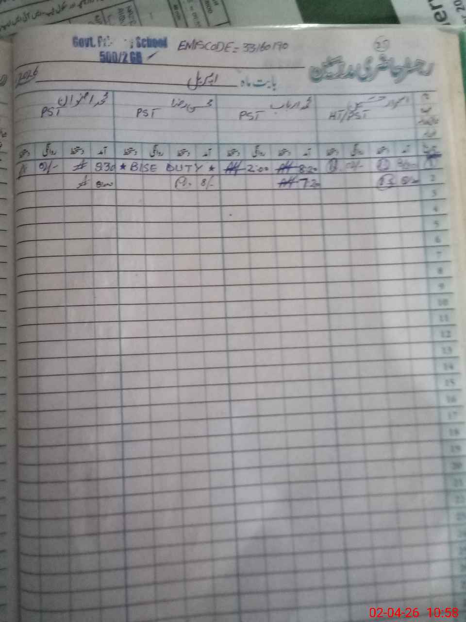 | Name: IS**** HU**** Designation: (School Headmaster's/Headmistress's) PST Phone/Cell Number: 03**** |
