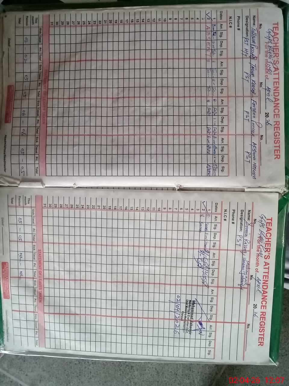 | 36**** | Ta**** Ra**** | PST Arts | Regular | 0 | 0 | 0 | 0 | 0 | 0 | 0 | 0 | 0 | Absent (Un-Authorized) |