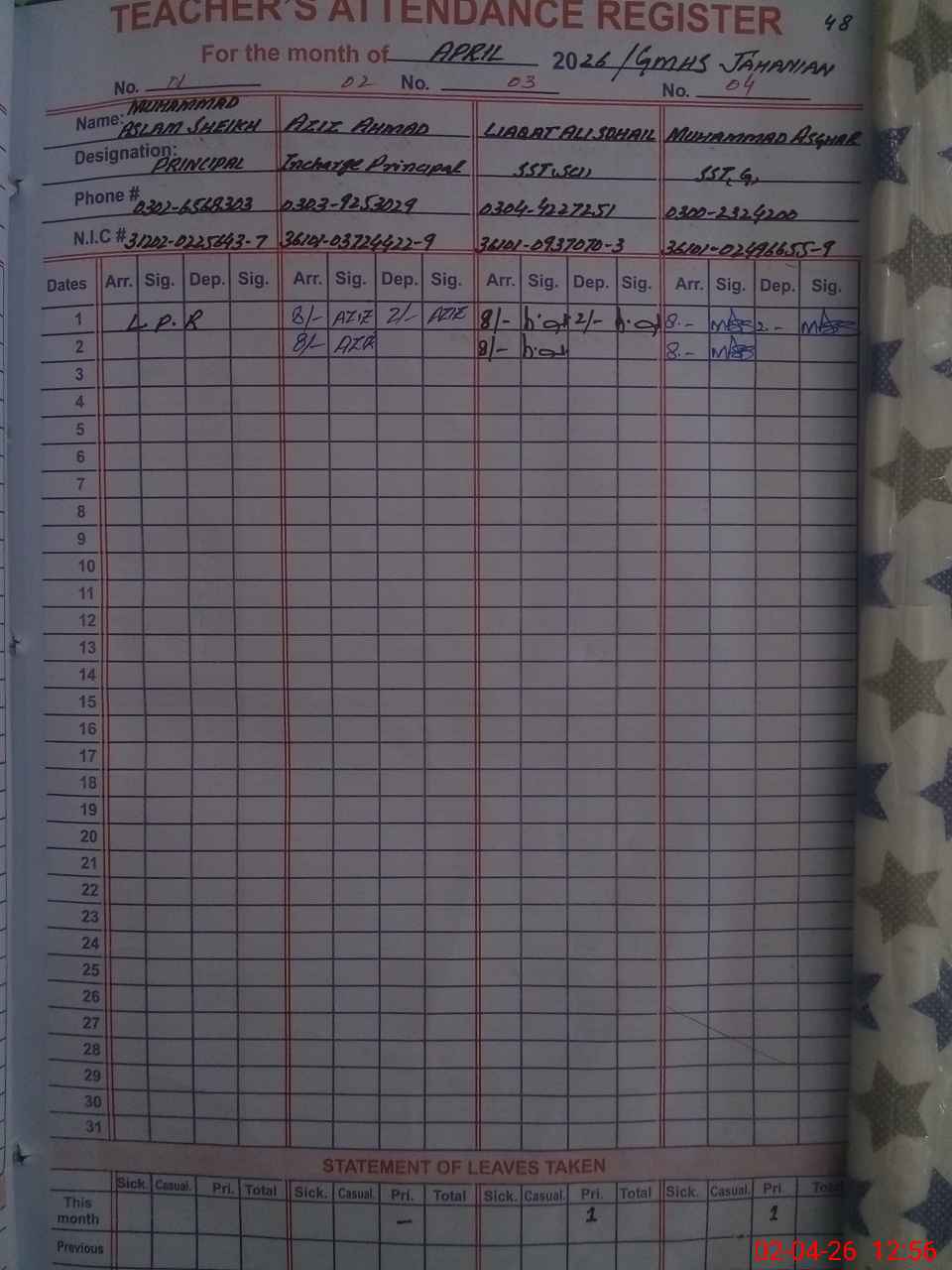 | 31**** | Mu**** As**** Sh**** | PRINCIPAL | Regular | 0 | 0 | 0 | 0 | 0 | 0 | 0 | 0 | 0 | |