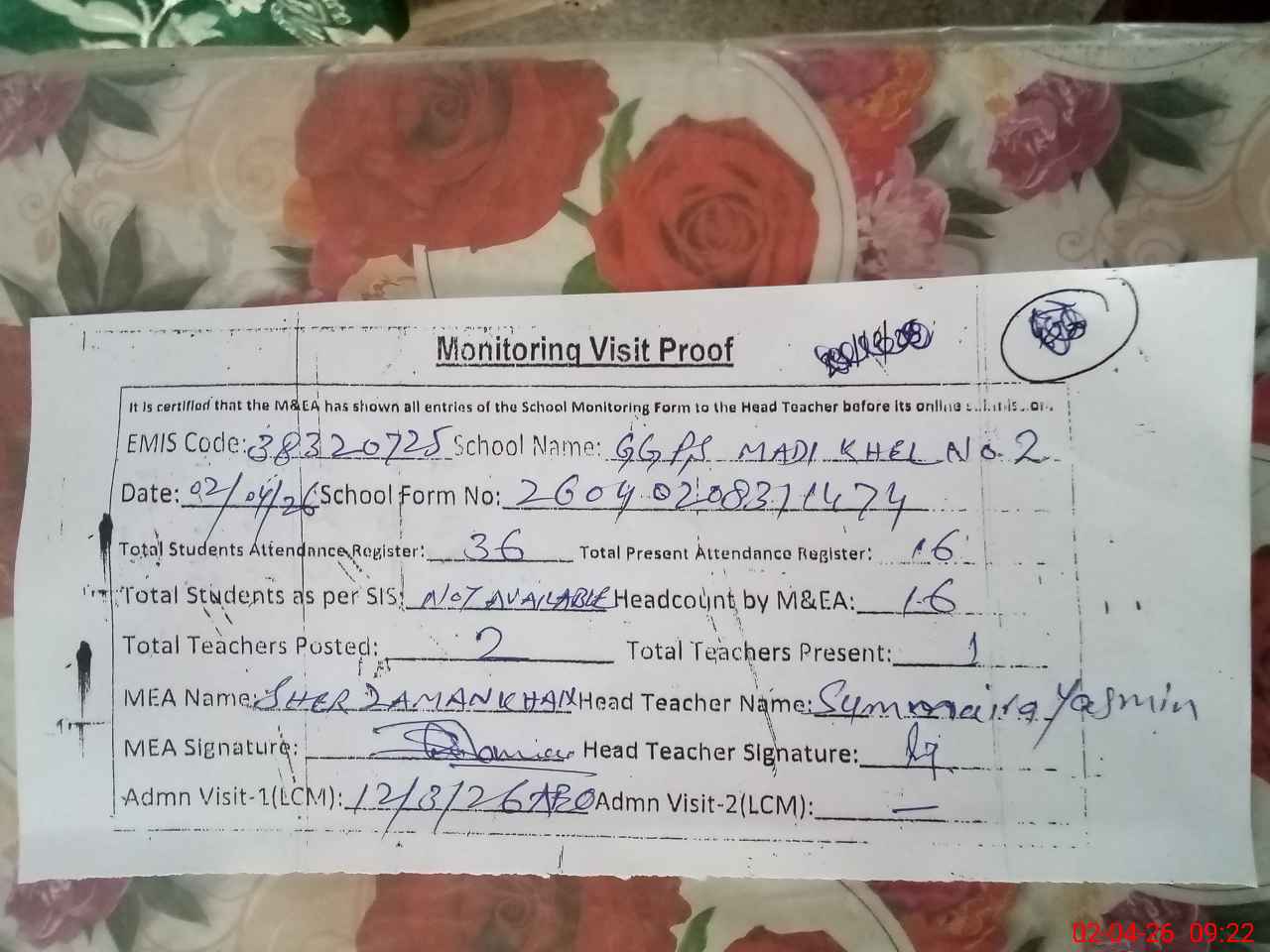 | EMIS Code: 38320725 | Name of School: GGPS MADI KHEL NO. 2 | |||