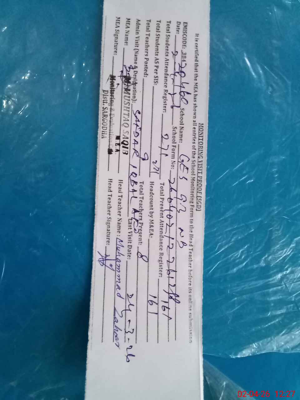 | EMIS Code: 38420460 | Name of School: GES CHAK NO.93 NB | |||