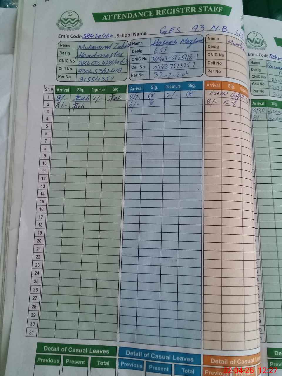 | 38**** | Kh**** An**** Ra**** | PST Science/Maths | Regular | 0 | 0 | 0 | 0 | 0 | 0 | 0 | 0 | 0 | Exam Duty |