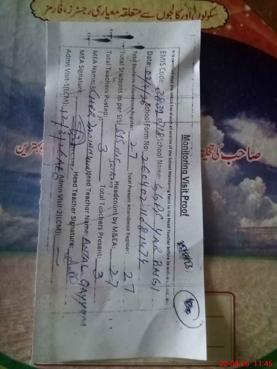 | EMIS Code: 38320718 | Name of School: GGPS YAR BAGI | |||