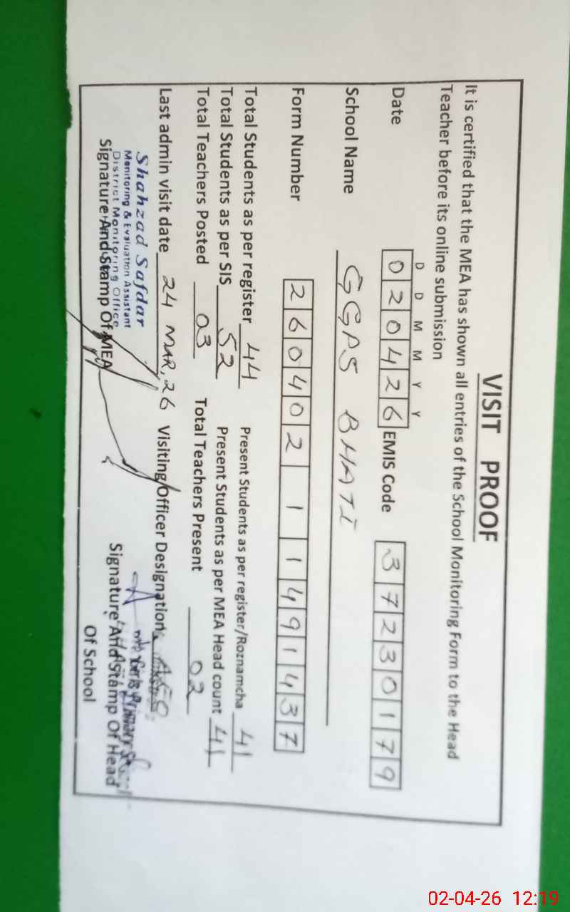 | EMIS Code: 37230179 | Name of School: GGPS BHATI | |||