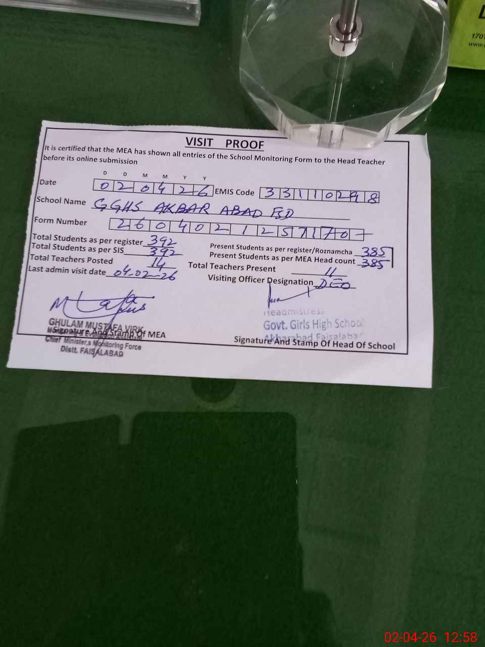 | EMIS Code: 33110298 | Name of School: GGHS AKBAR ABAD FSD | |||