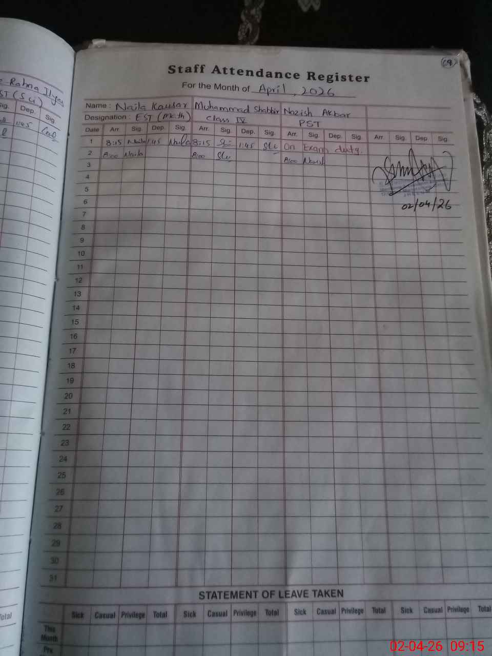 | Remarks (Use Separate Page if Required): Shazia Akeel khan EST and Mobina kanwal PST are in near village for admission compaign. | |||||