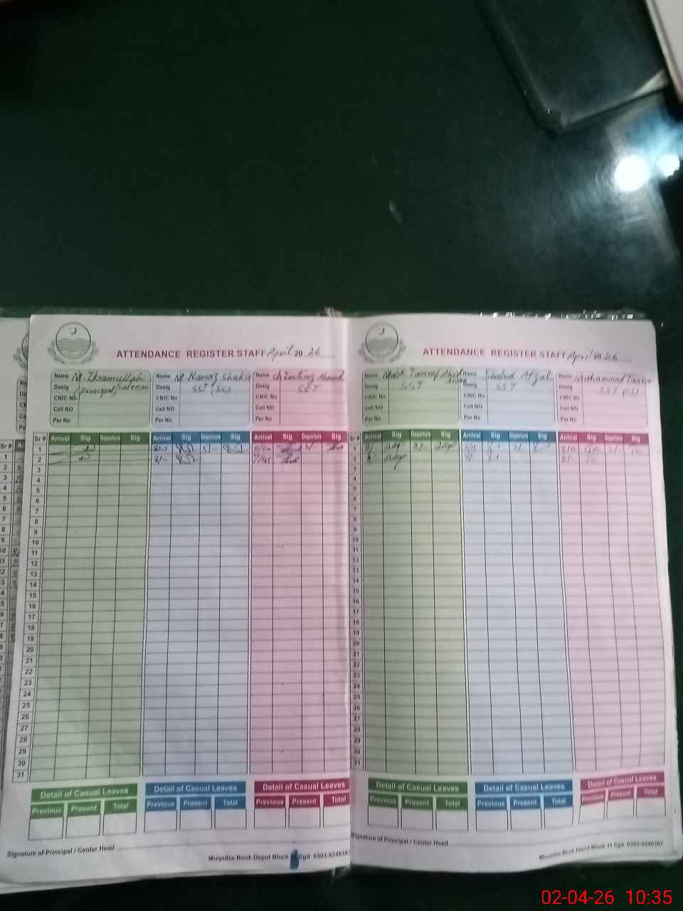| CNIC | Full Name | Designation | R/C | Absence During Last Calender Month |