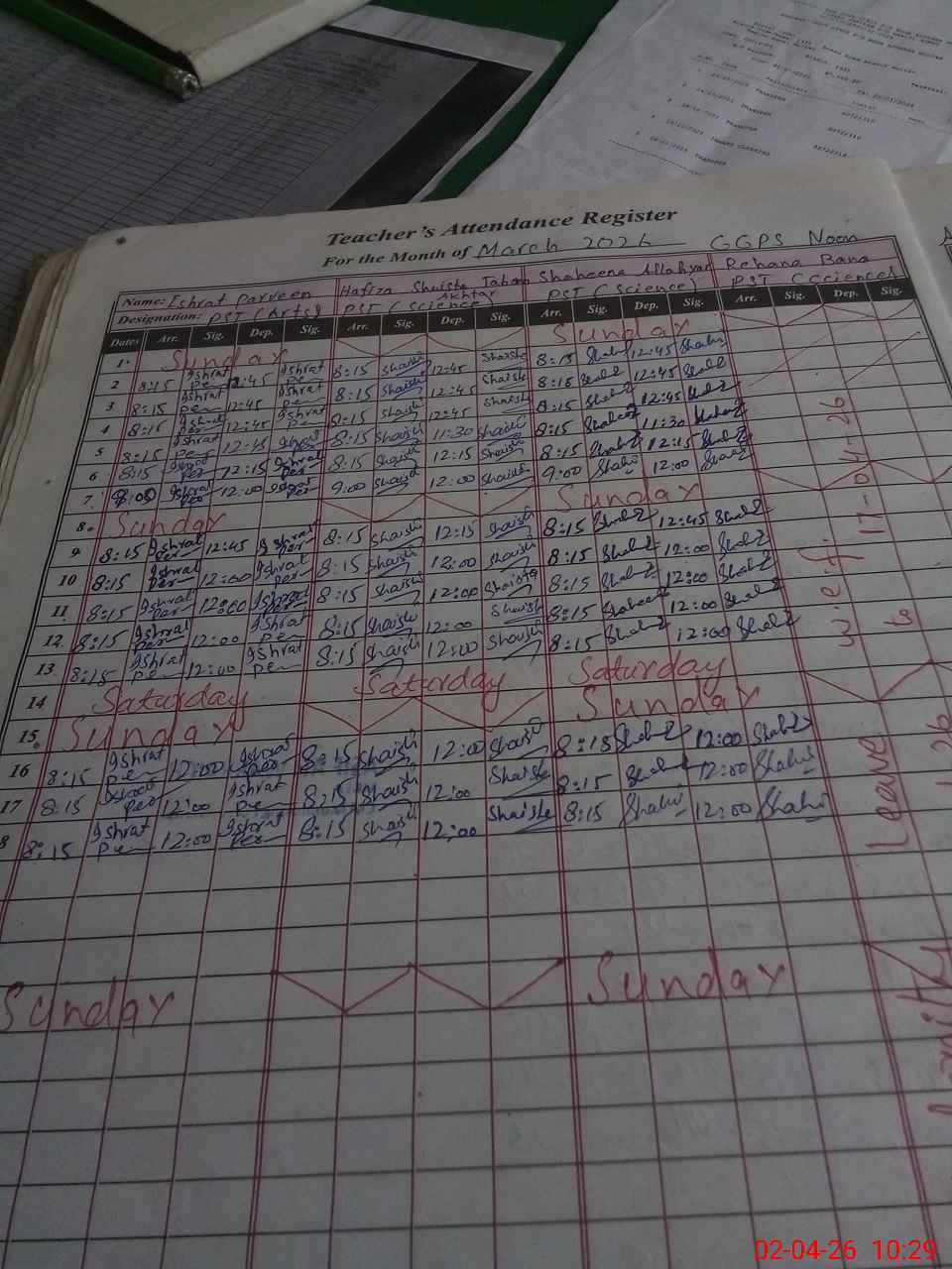| 36**** | Re**** Ba**** | PST Science/Maths | Regular | 0 | 0 | 0 | 0 | 0 | 0 | 0 | 0 | 0 | Maternity |