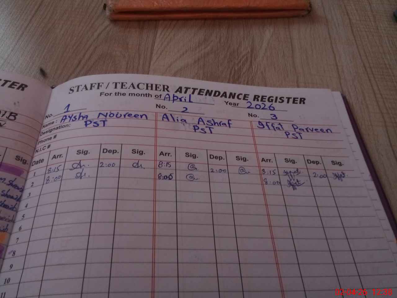 | Name: RI**** NA**** Designation: (School Headmaster's/Headmistress's) PST Phone/Cell Number: 03**** |