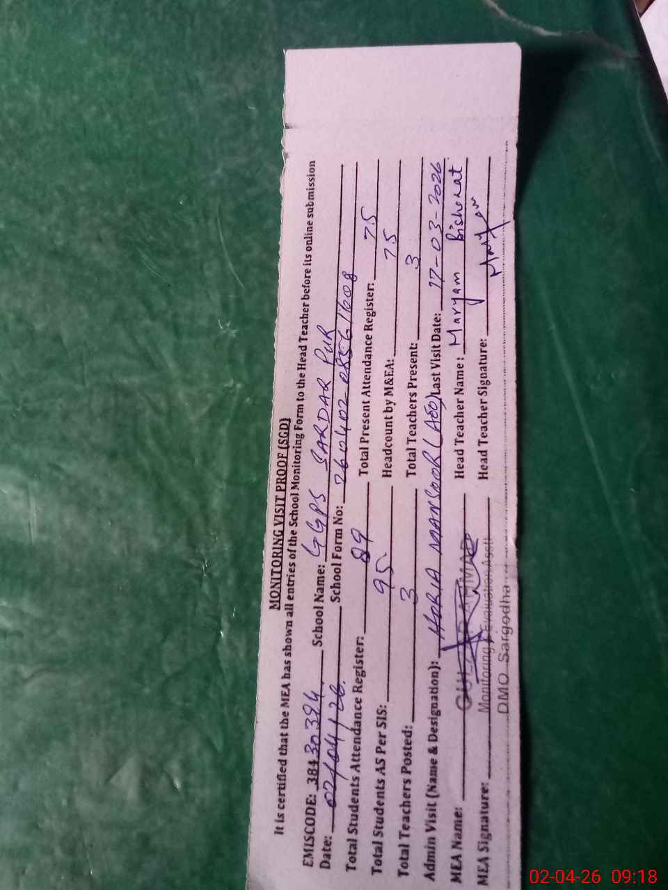 | EMIS Code: 38430394 | Name of School: GGPS SARDAR PUR | |||