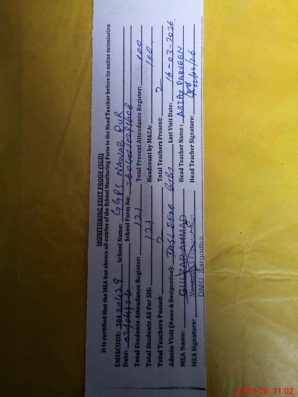 | EMIS Code: 38430429 | Name of School: GGPS NAWAB PUR | |||