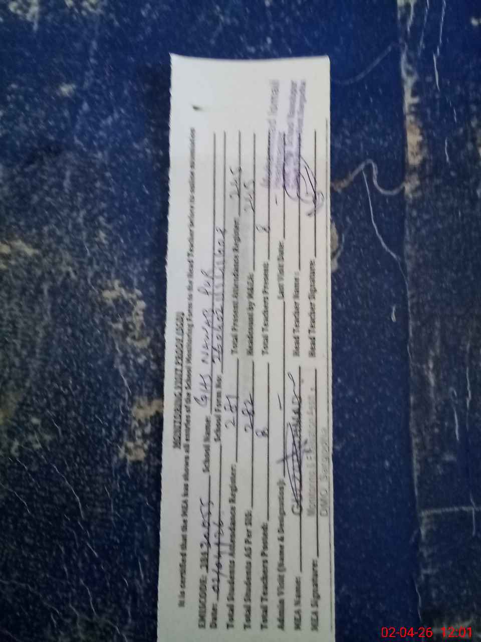 | Attendance Register | Head Teacher | MEA with School | Visit Proof |