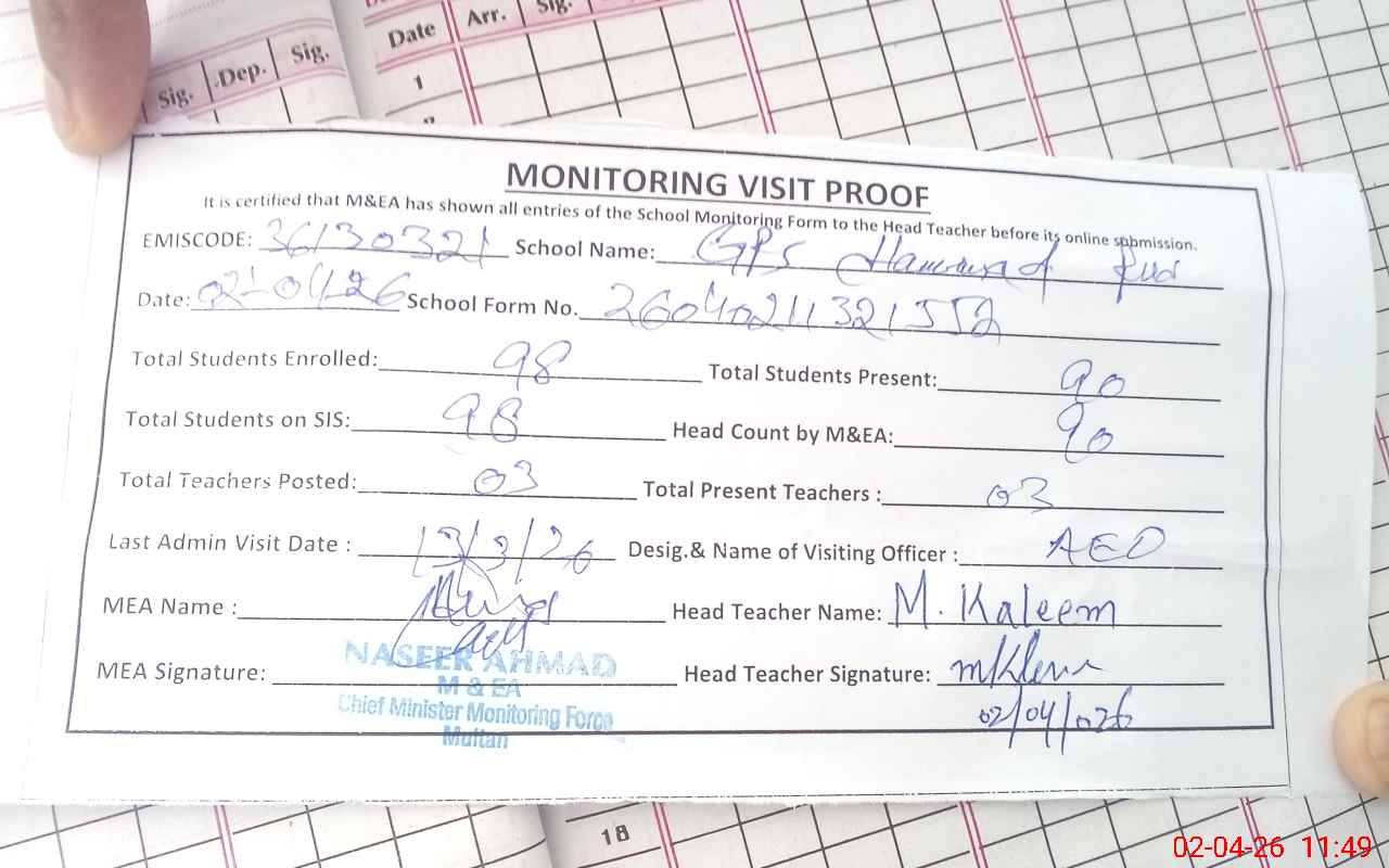 | EMIS Code: 36130321 | Name of School: GPS HAMMAD PUR | |||