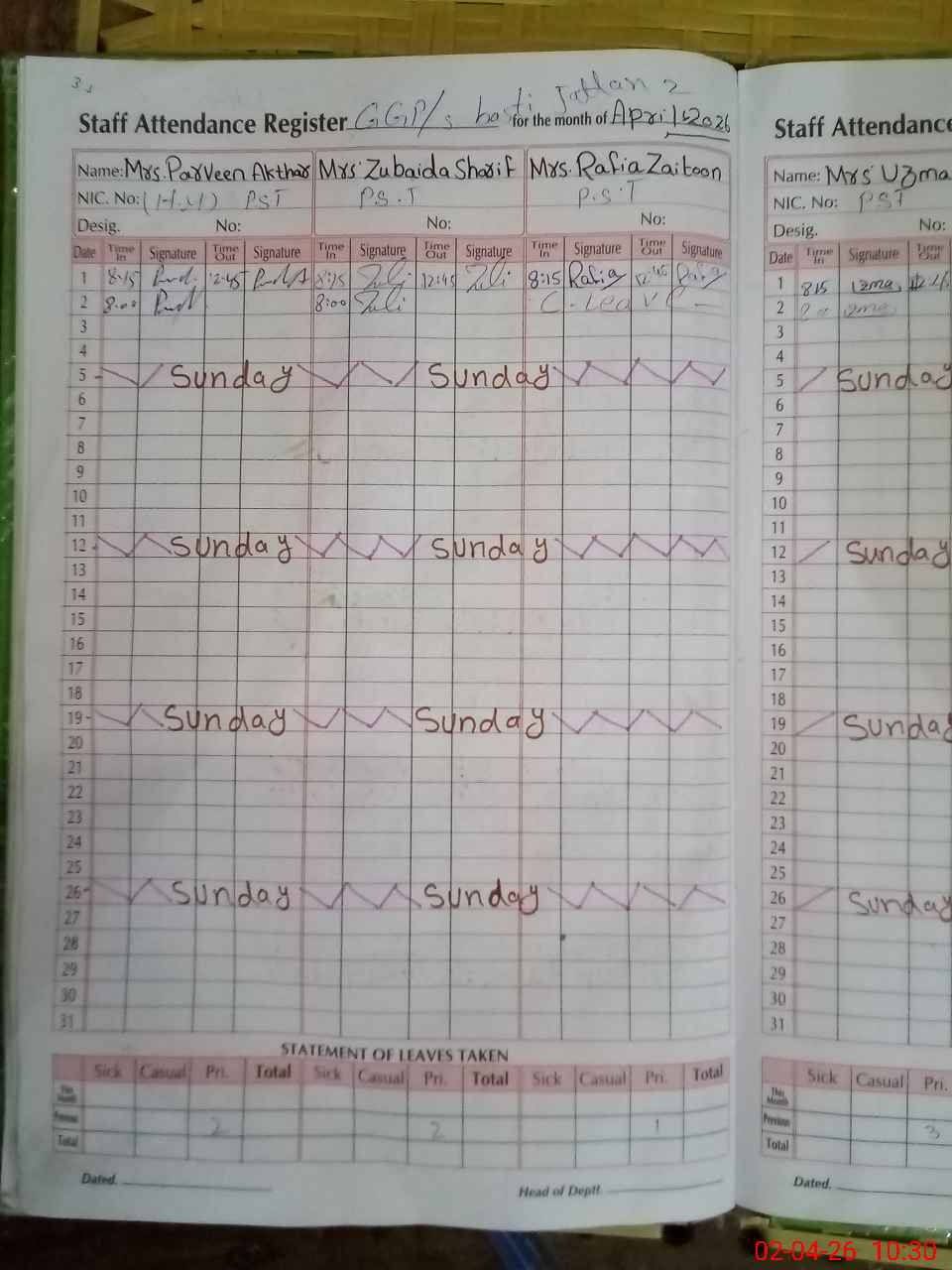 | Leave | Duty | Absent | Maternity | Medical | Ex- Pak |