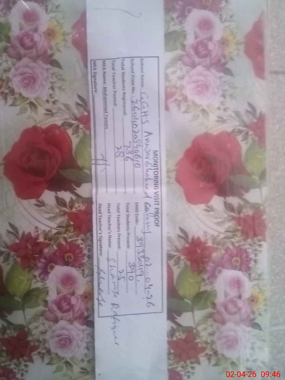 | EMIS Code: 39330119 | Name of School: GGHS ANWAR SHAHEED COLONY | |||