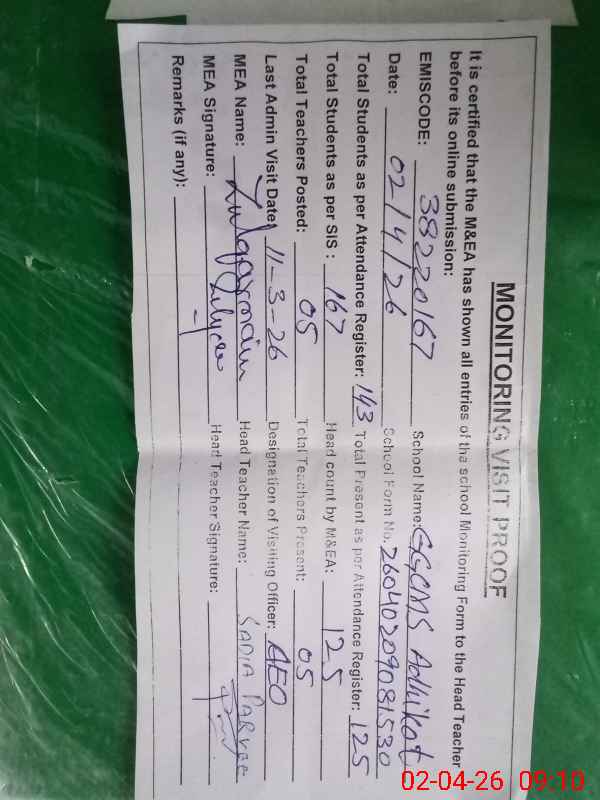 | EMIS Code: 38220167 | Name of School: GGCMS ADHIKOT | |||