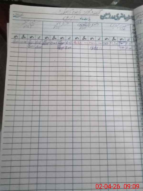 | CNIC | Full Name | Designation | R/C | Absence During Last Calender Month |