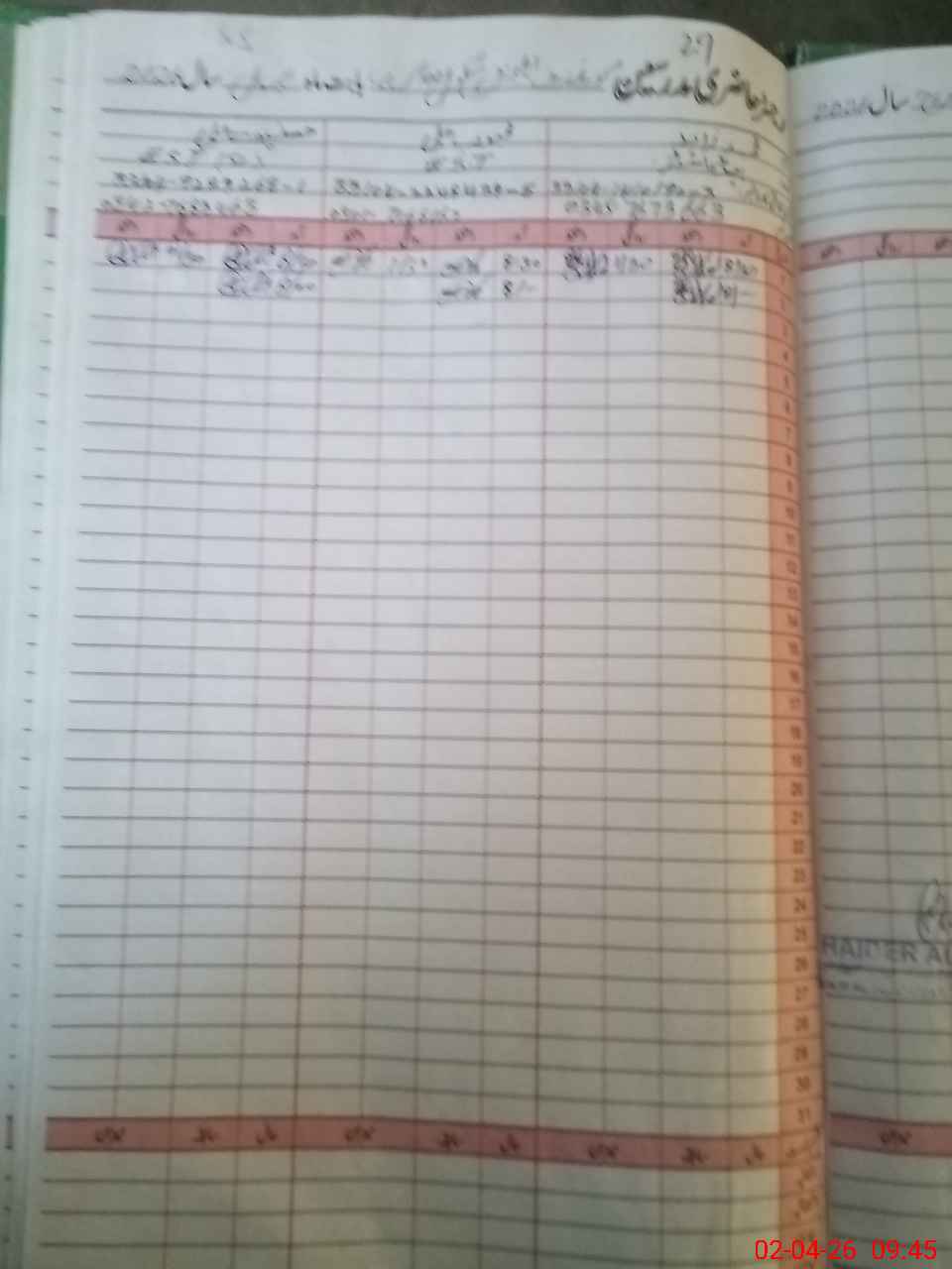 | CNIC | Full Name | Designation | R/C | Absence During Last Calender Month |
