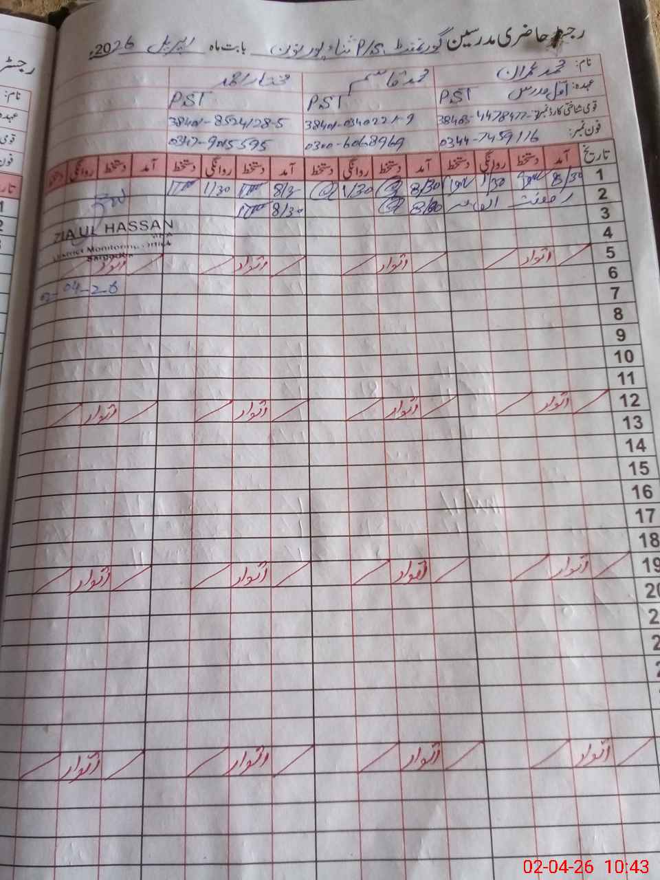 | Name: MU**** IM**** Designation: (School Headmaster's/Headmistress's) PST Phone/Cell Number: 03**** |